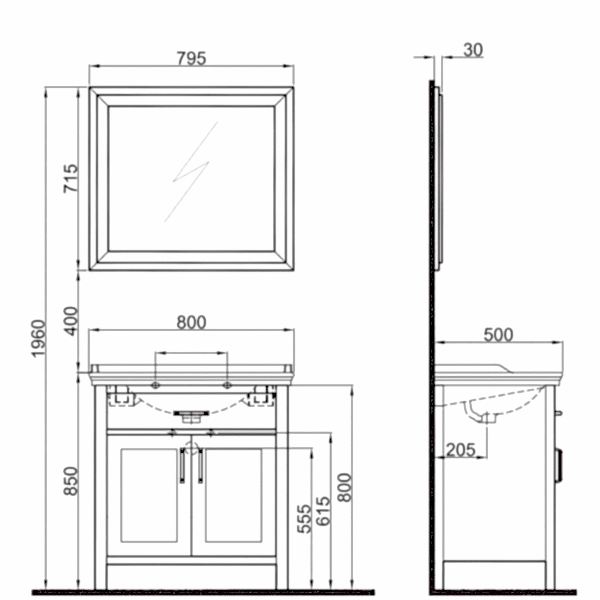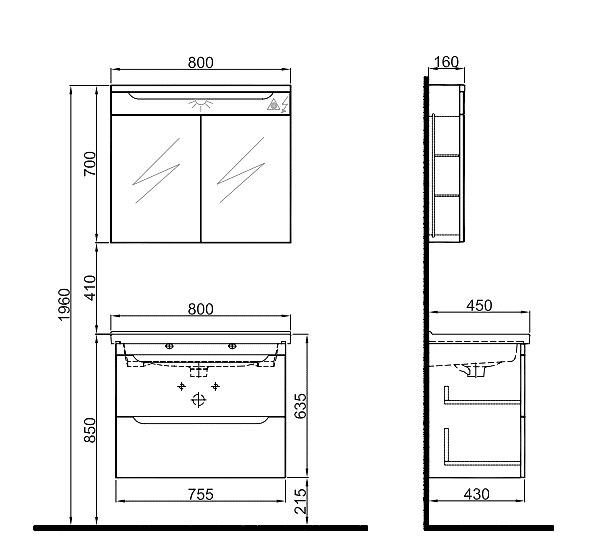 Kale Casilla 80 Cm Set (Idea 2.0 Lavabo + Lavabo Dolabı + Ayna Dolabı) Satin Gri Rengi:Satin Gri Gövde: MDF