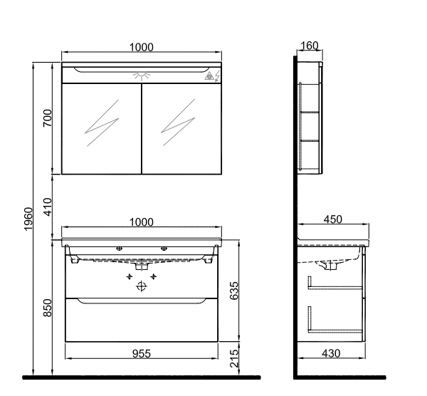 Kale Casilla 100 Cm Set (Idea 2.0 Lavabo + Lavabo Dolabı + Ayna Dolabı) Satin Gri Rengi:Satin Gri Gövde: MDF