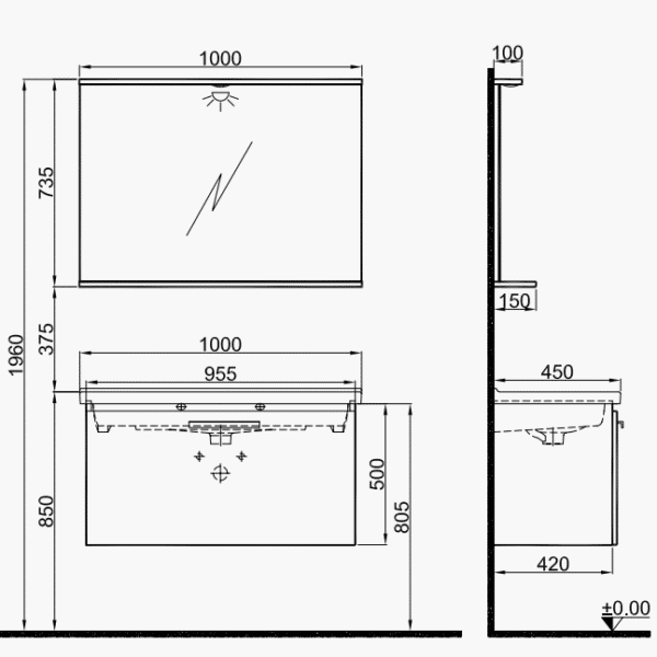 Kale Lotus 100 Cm Mat Gri-Antrasit Banyo Dolabı Takımı Ebat: 100 Cm Renk: Mat Gri Tezgah Rengi: Antrasit Lavabo: Oval